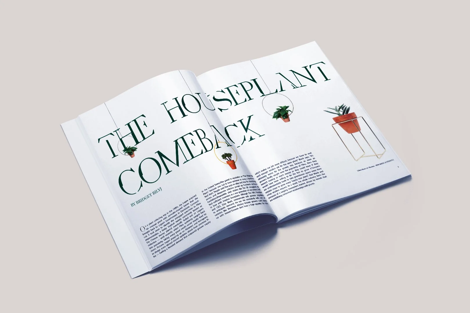 This is a layout project in which I took a web article by Bridget Bilyj for Garden Center magazine and translated it to a four spread print article. This project demonstrates my knowledge of typography and my ability to adapt type to different formats. My design employs various typographic techniques such as typographic grid systems, typographic hierarchy and type setting. I am an avid indoor gardener so I took this project as an opportunity to design content around something I love doing.